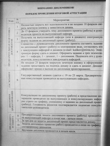 Расписание работы над дипломными проектами